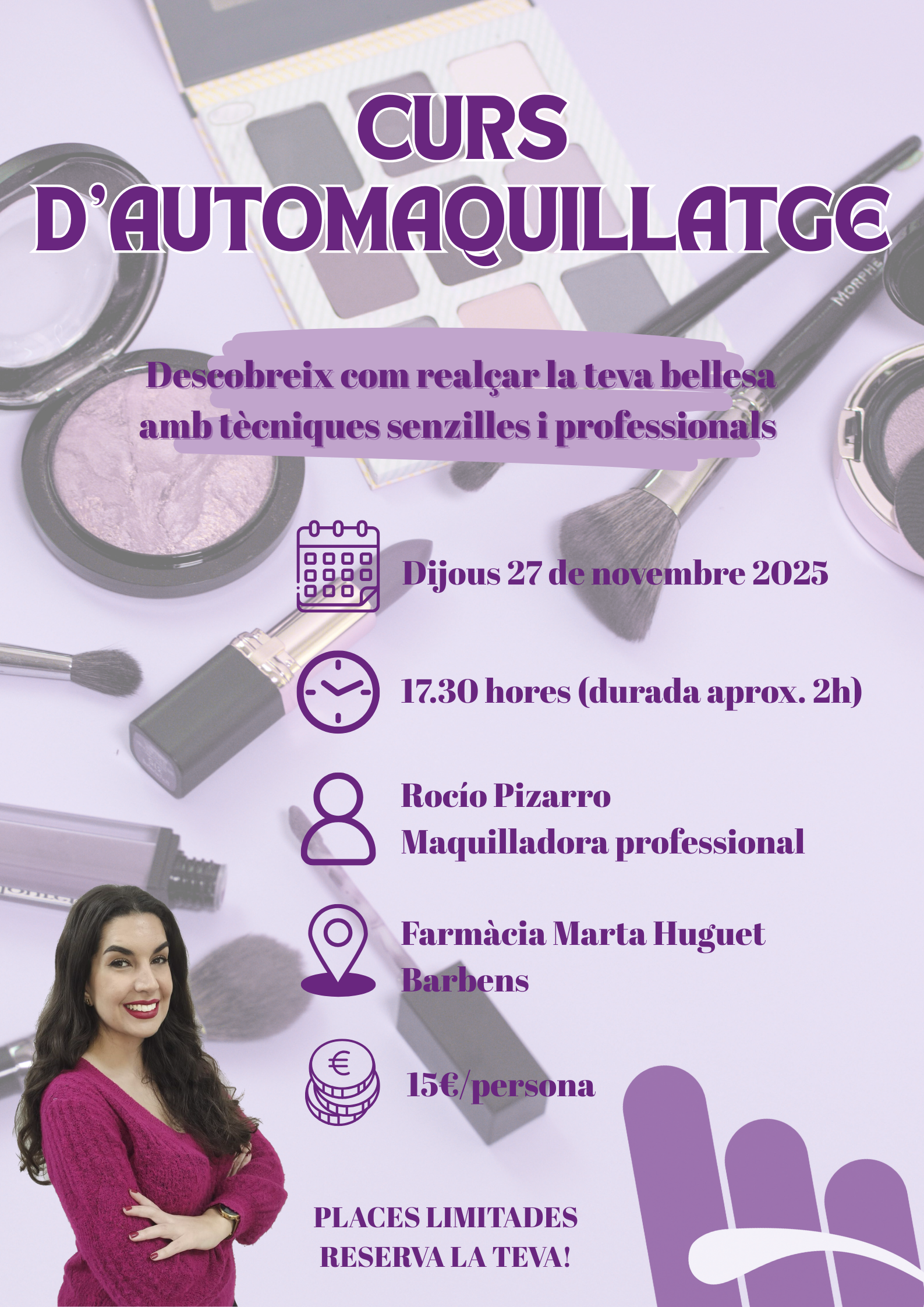 De la mà de Rocío Pizarro, maquilladora professional, dedica't una tarda per aprendre a maquillar-te i cuidar-te.